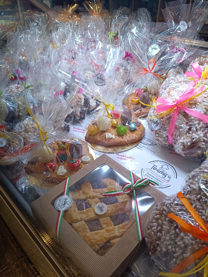 - "This image depicts a display case within a bakery or patisserie, identified as "Tiramisù Pastelería Artesanal Bollería Cafetería," presumably located in Sagunto, Spain" by FM-BdCXB3, licensed under CC BY 4.0