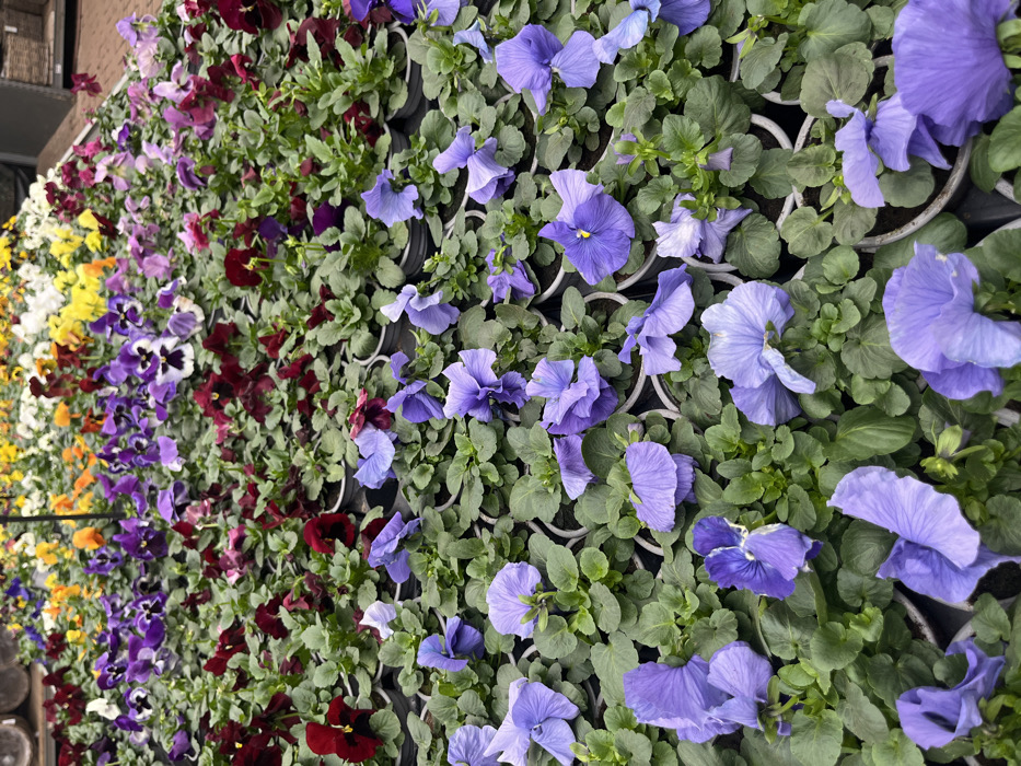 - "This image displays a vast collection of potted pansies (Viola x wittrockiana) arranged in dense rows within an indoor commercial setting, identifiable as a garden center or plant nursery in Mouscron, Belgium" by FM-2aYl13, licensed under CC BY 4.0
