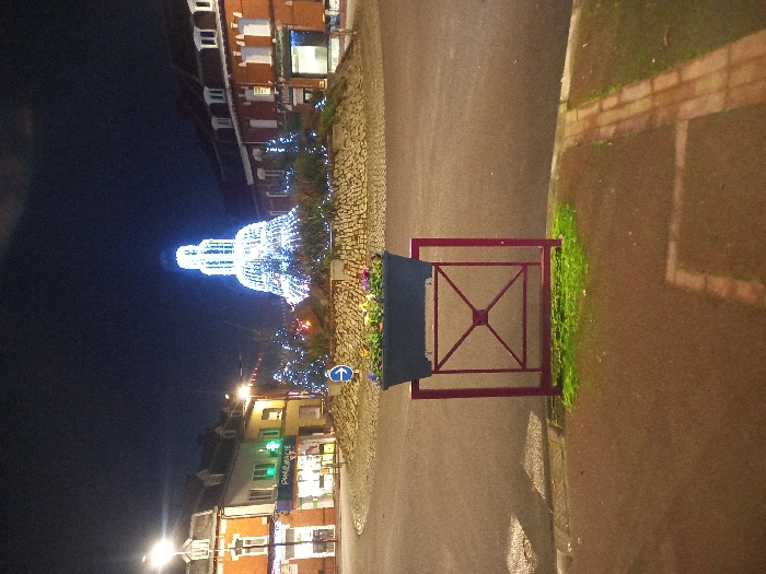 This nighttime image depicts the Place Henri Barbusse in Sallaumines, France