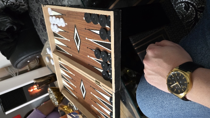 - "The image depicts an indoor scene in Kazanlak, Bulgaria, centered on a backgammon game" by FM-1AW5I2, licensed under CC BY 4.0