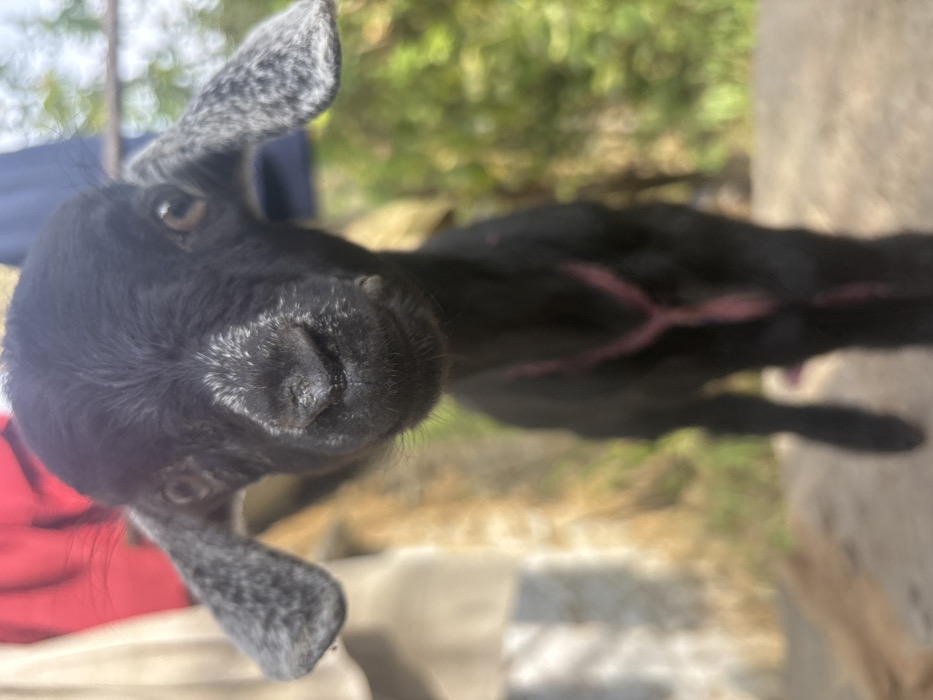 - "A black goat kid is depicted standing outdoors, facing the camera directly, within the city of Kasar Devi, India" by FM-qdUeY2, licensed under CC BY 4.0