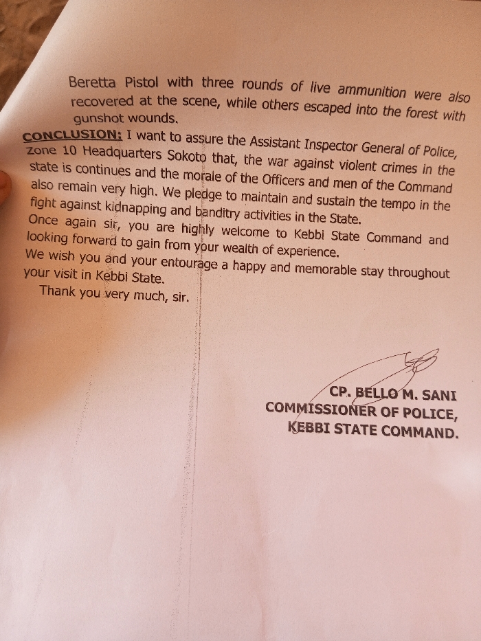 printed document with a text that is a conclusion from the Commissioner of Police in Kebbi State, Nigeria
