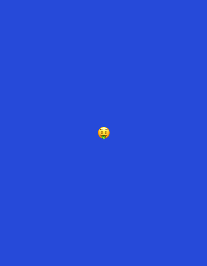 The image displays a uniform deep blue background. Centrally positioned within this background is a single digital emoji. The emoji features a yellow circular face with dollar signs ($) as eyes and a green dollar bill protruding from its open mouth, resembling a tongue. No other subjects, objects, actions, interactions, or environmental features are present. The image does not contain any visual data to determine a physical location, including Nsugbe, Nigeria.