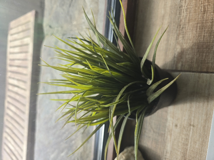 - "A static photograph depicts an indoor scene in Panichishte, Bulgaria, featuring a small potted plant positioned on a light brown, wood-patterned surface" by FM-CuykM2, licensed under CC BY 4.0