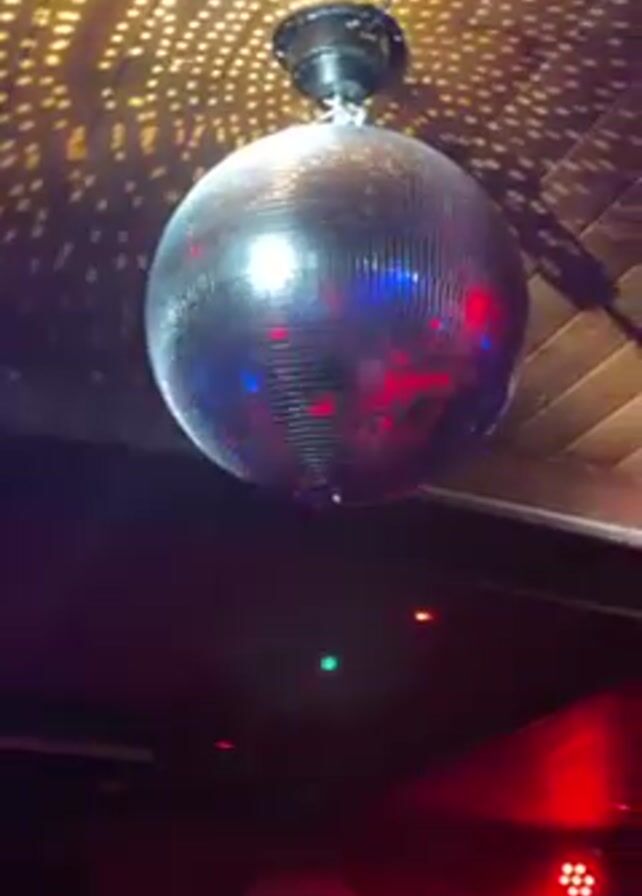 The video opens with a shot of a disco ball hanging from a wooden ceiling, projecting patterns of light on the surrounding area
