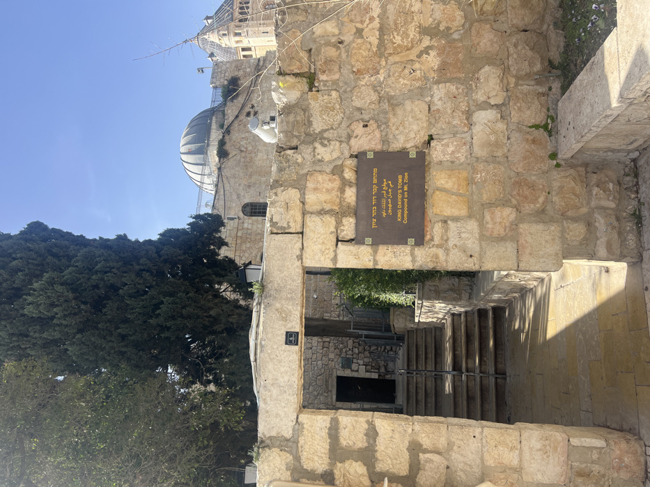 The image displays the entrance to the King David's Tomb Compound on Mount Zion in Jerusalem, Israel