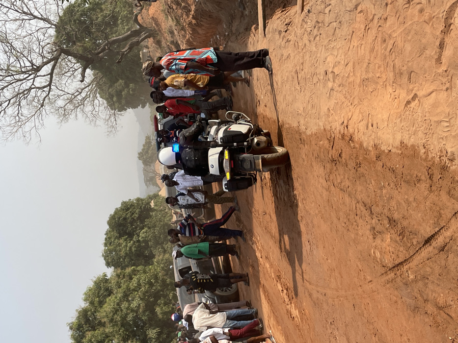 - "A police motorcycle, flanked by a crowd of people, traverses a dirt road in a rural setting" by FM-FxECU2, licensed under CC BY 4.0