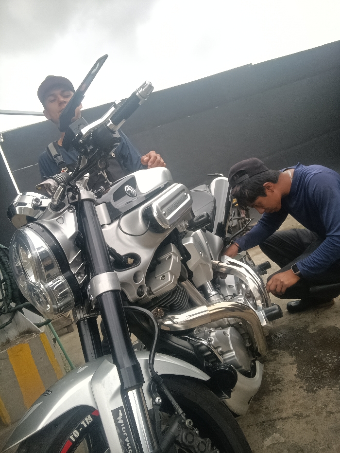 - "Two young men are attending to a silver and chrome motorcycle" by FM-ui0f72, licensed under CC BY 4.0