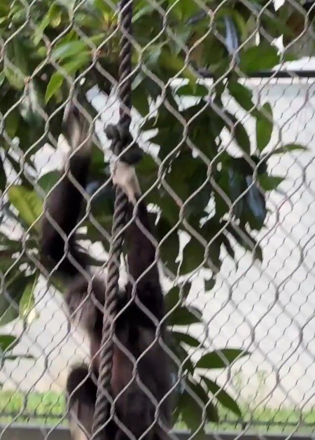 - "black gibbon hanging from a thick rope inside a wire enclosure at what appears to be a zoo or animal sanctuary" by FM-SHEMl1, licensed under CC BY 4.0