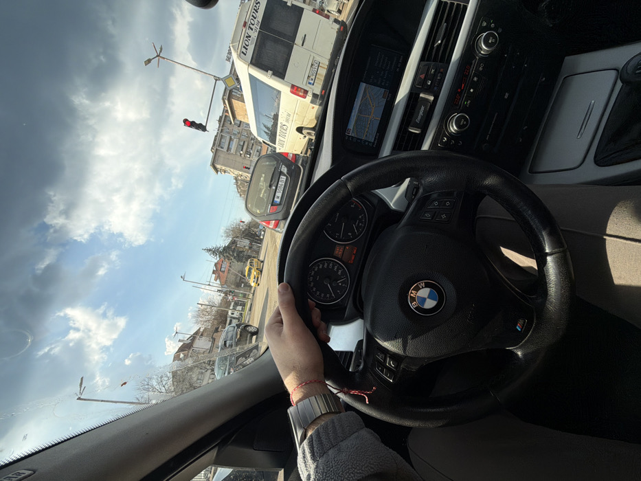 - "The image presents a first-person perspective from the driver's seat of a black BMW, stationary at a red traffic light on an urban street in Montana, Bulgaria" by FM-s2kFx1, licensed under CC BY 4.0