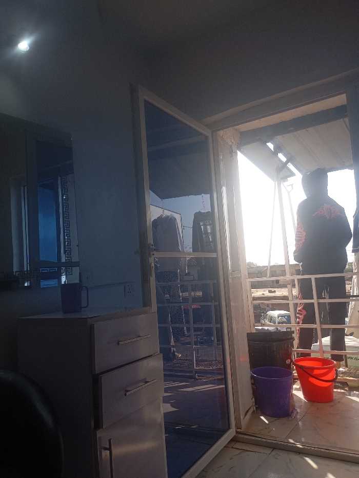 This image depicts an indoor-outdoor transitional space in Bukuru, Nigeria