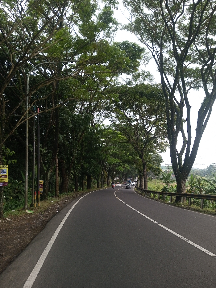 - "The image displays a two-lane asphalt road curving gently to the right, bordered on the left by a dense, steep embankment covered in thick foliage and numerous tree trunks" by FM-Vi0RX2, licensed under CC BY 4.0