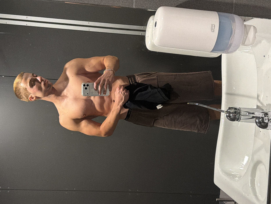 - "A young adult male, shirtless and with a muscular build, short light-colored hair, and fair skin, is depicted taking a mirror selfie" by FM-nZJSF3, licensed under CC BY 4.0