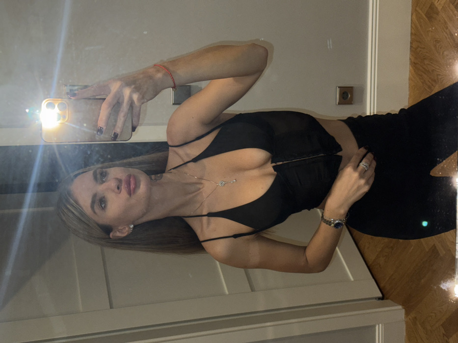 A fair-skinned adult female is depicted in a mirror selfie taken indoors in Berlin, Germany