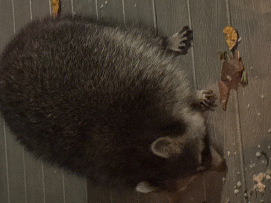 - "A raccoon sprawls on a wooden surface" by FM-ownra2, licensed under CC BY 4.0