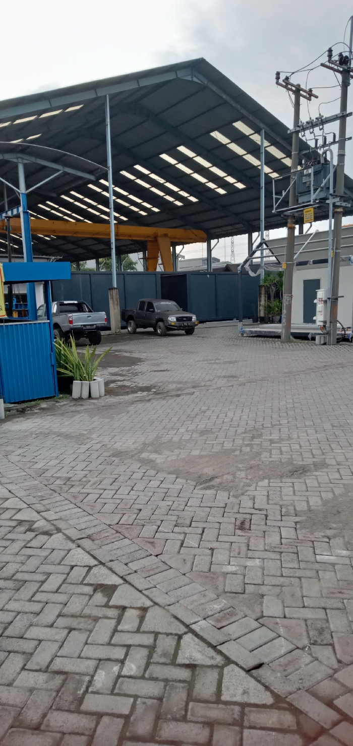 The image captures an industrial or commercial exterior in Sumput, Indonesia, under an overcast sky
