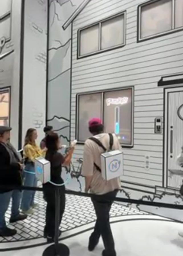 - "A video captures a small crowd gathered in front of a sizable, cartoonish building facade" by FM-J9Tlk2, licensed under CC BY 4.0