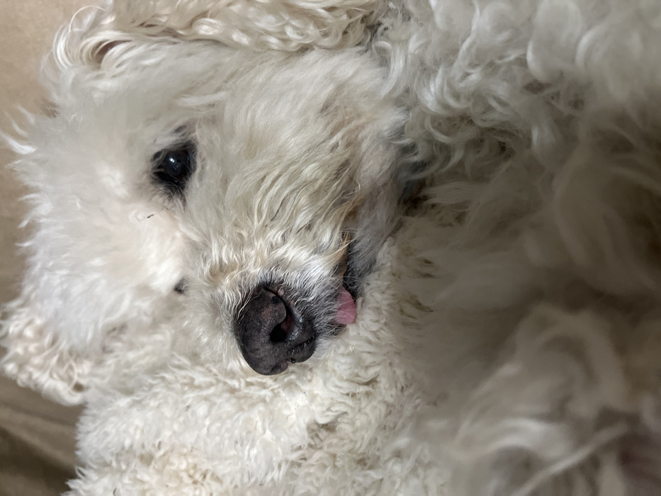 - "A white, curly-haired domestic dog is depicted in a close-up, horizontal orientation" by FM-c5Nd33, licensed under CC BY 4.0