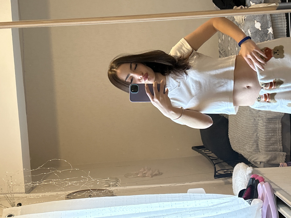 The image displays a young female taking a mirror selfie within a residential room in Strasbourg, France