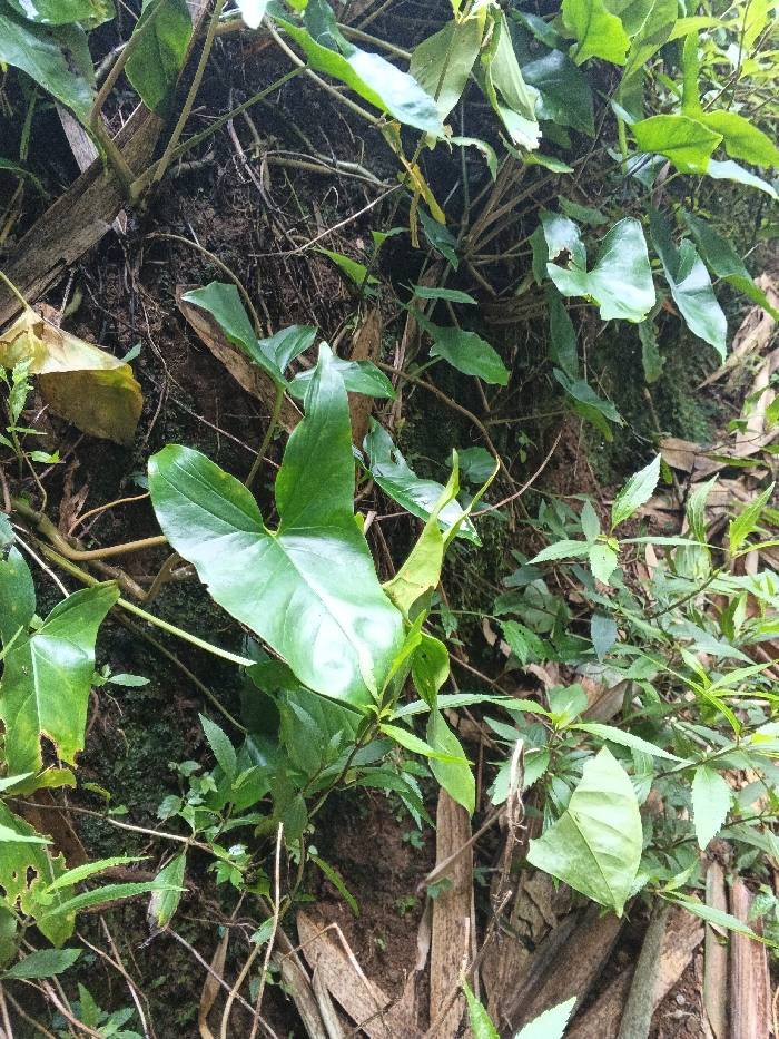 Lush green vegetation dominates the scene, with heart-shaped leaves of varying sizes taking center stage
