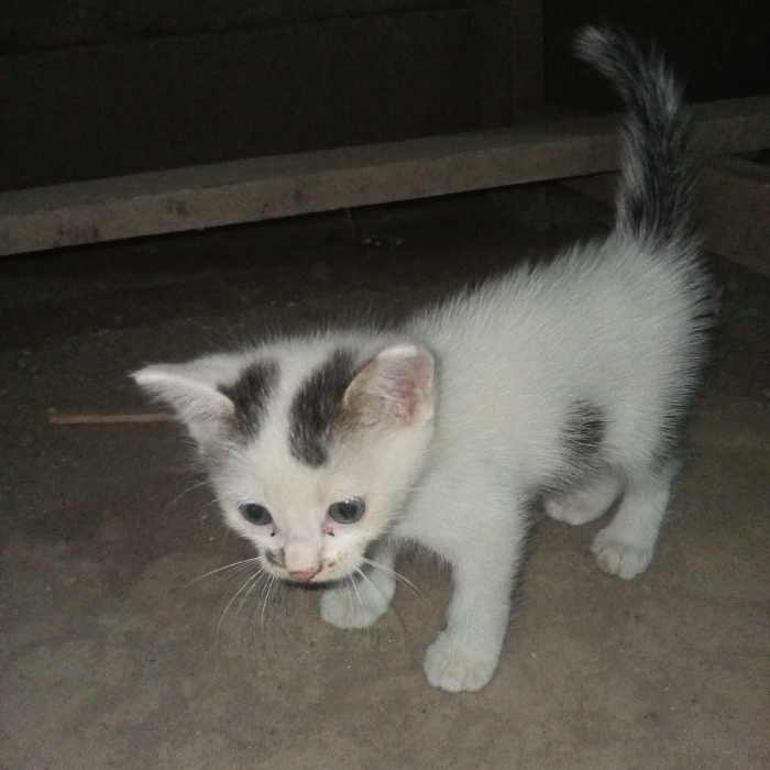 - "An image captured in Ketowan, Indonesia, depicts a small, primarily white domestic kitten standing on a flat, light grey-brown surface" by FM-cHJi83, licensed under CC BY 4.0
