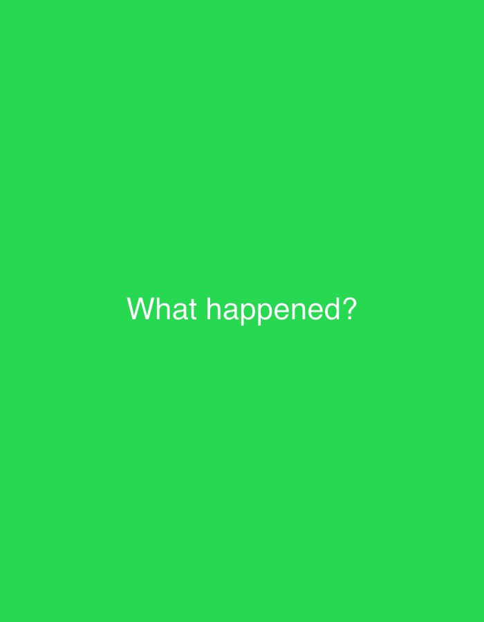 The image displays the question "What happened?" in white, centered horizontally and vertically on a vibrant green background