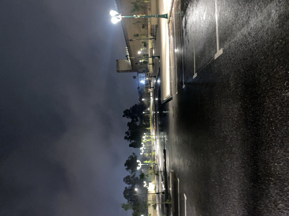 - "A wet, dark asphalt parking lot with white parking lines under a cloudy night sky" by FM-HlXDJ3, licensed under CC BY 4.0