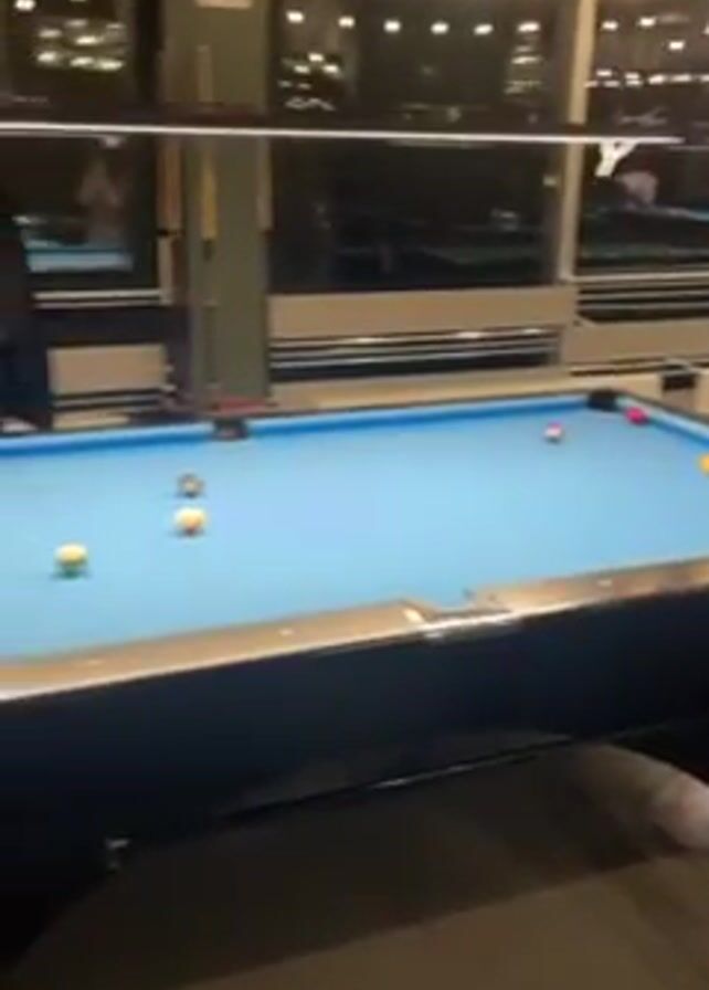 Here's a breakdown of the video: The video shows a billiard room at night