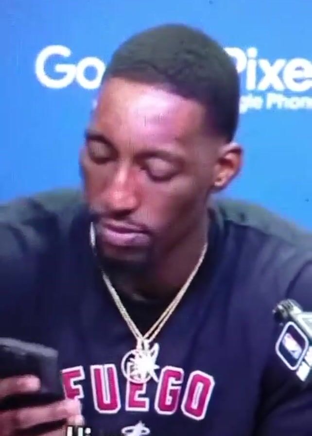 A man is shown on camera during what appears to be an interview. He is wearing a black t-shirt that has “FUEGO” written on it in white and red letters. Below the word, in a smaller font, is “Hold up.” Suddenly, the man answers his phone and says “Hi, mommy” into the phone. The screen also has the words “On your mother” at the top and “Go Pixel” is seen in the background.