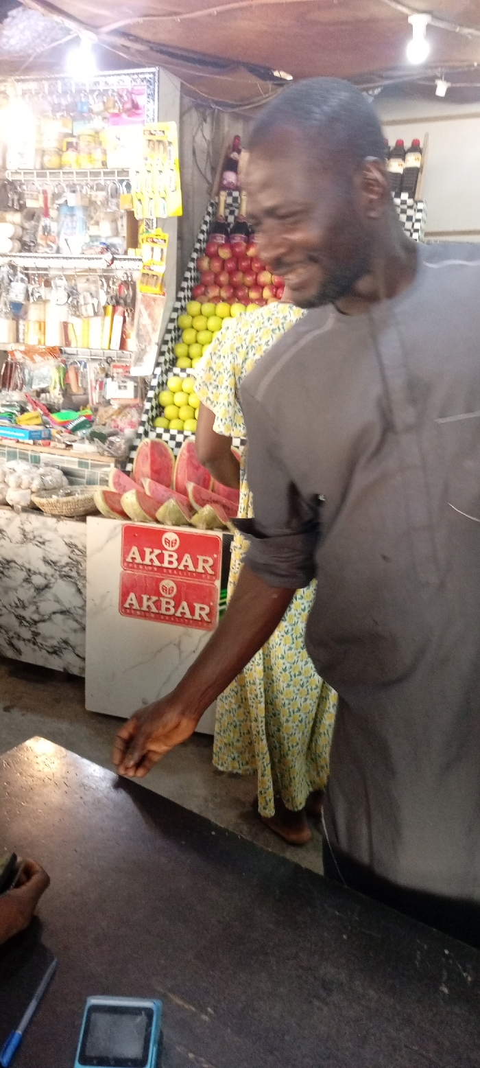 This image depicts an indoor market stall or small shop located in Aviation Quaters, Nigeria