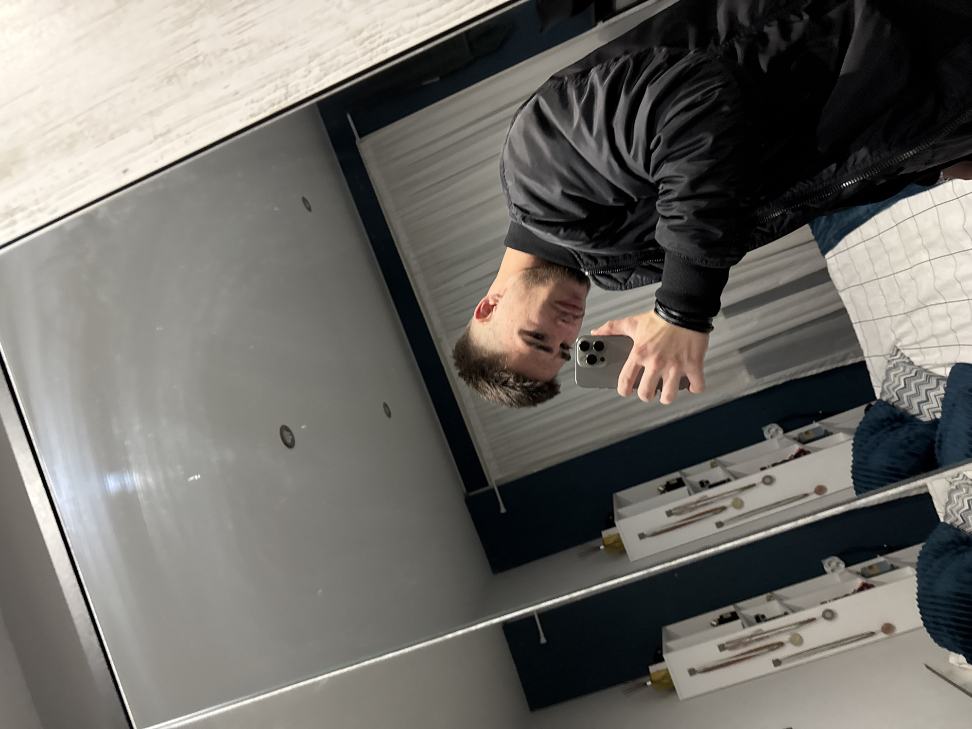 An image taken in a mirror depicts a male subject in an interior space within the city of Vidin, Bulgaria