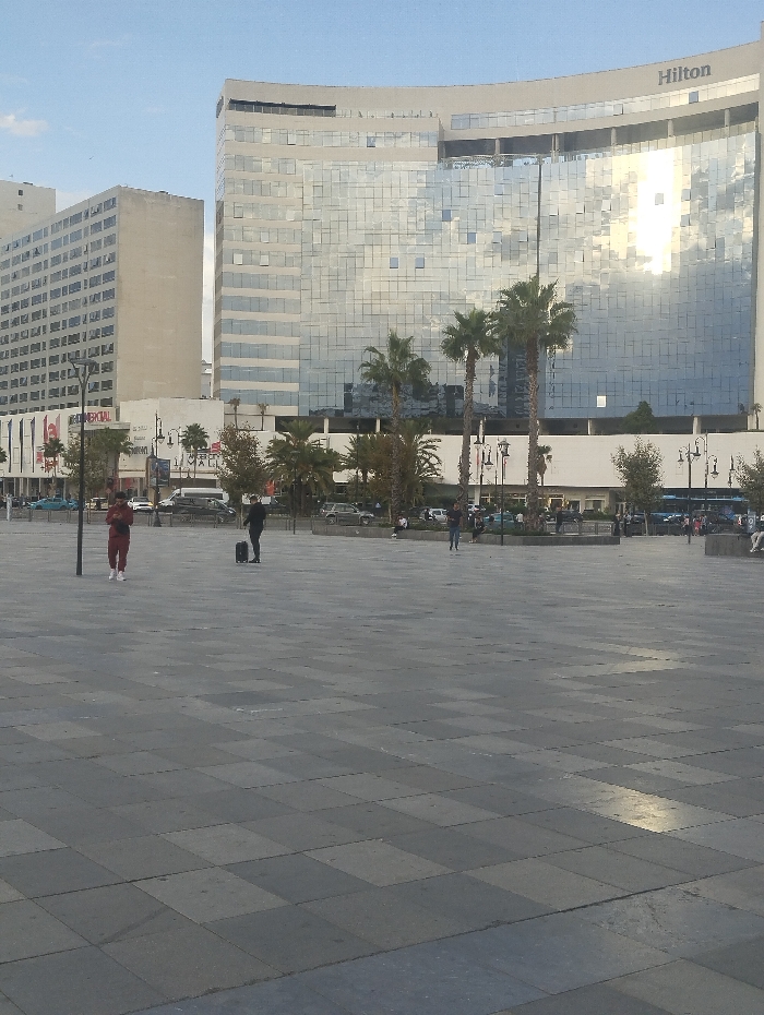 - "This image captures a wide view of Place des Nations in Tangier, Morocco, facing the Hilton Tangier City Center Hotel & Residences" by FM-ZknsT2, licensed under CC BY 4.0