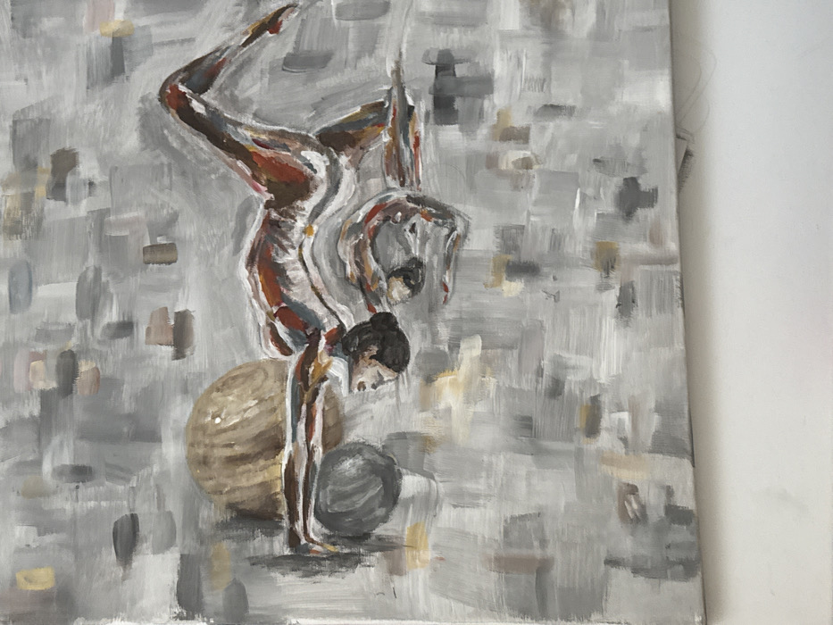 The image displays a photograph of a canvas painting
