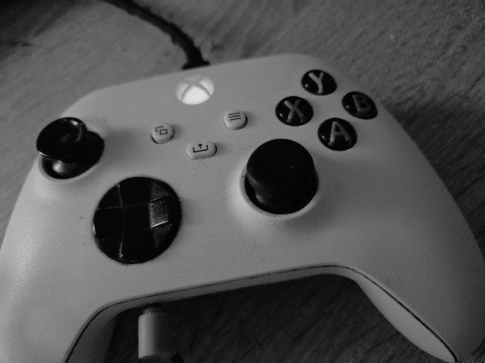 - "A close-up, black and white shot features a modern Xbox controller" by FM-hW5fH2, licensed under CC BY 4.0