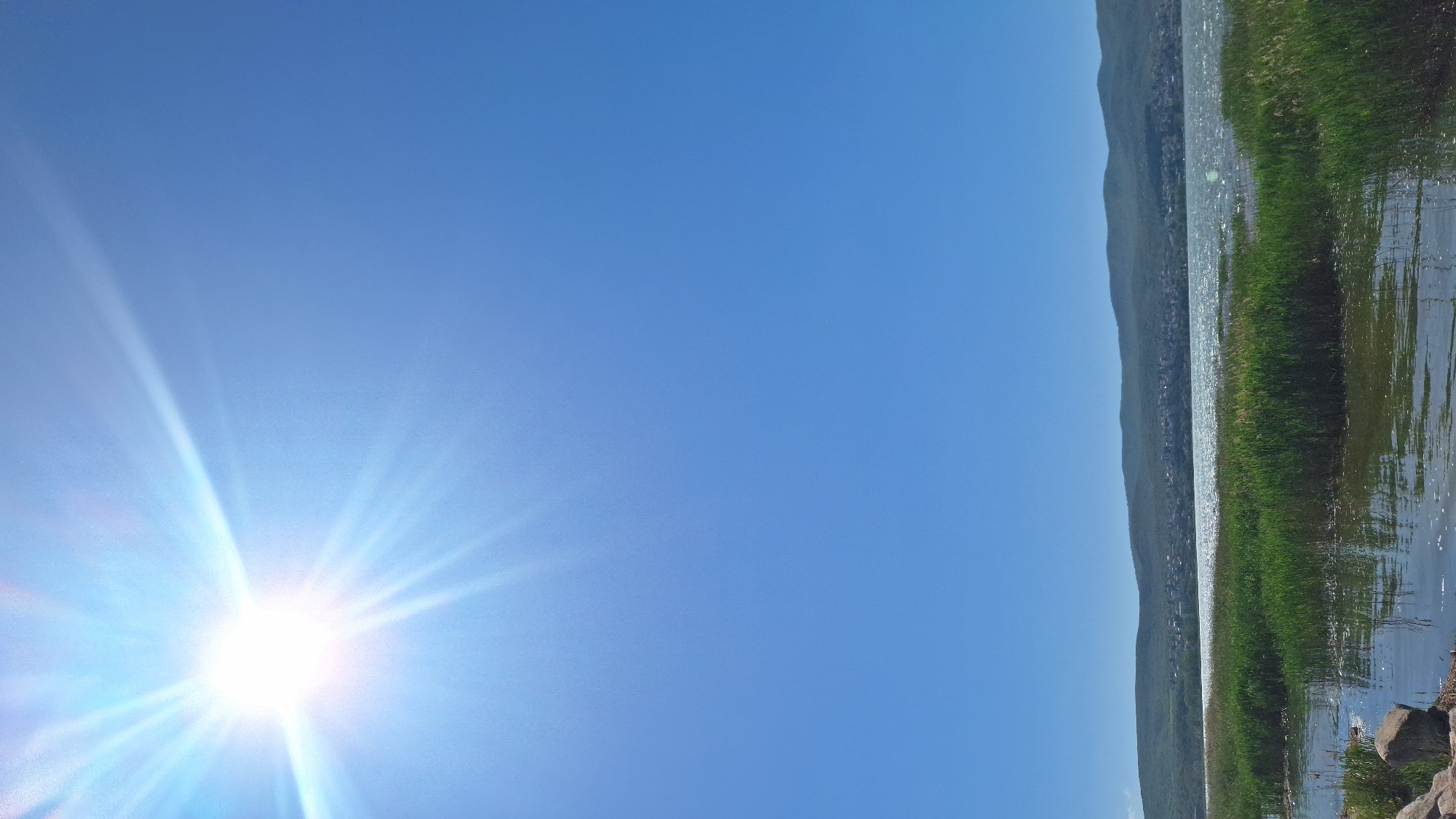 - "The image depicts a scene in Doirani, Greece, showing a bright sun in a clear blue sky, and a body of water lined with green vegetation and reeds" by FM-1mUZ03, licensed under CC BY 4.0