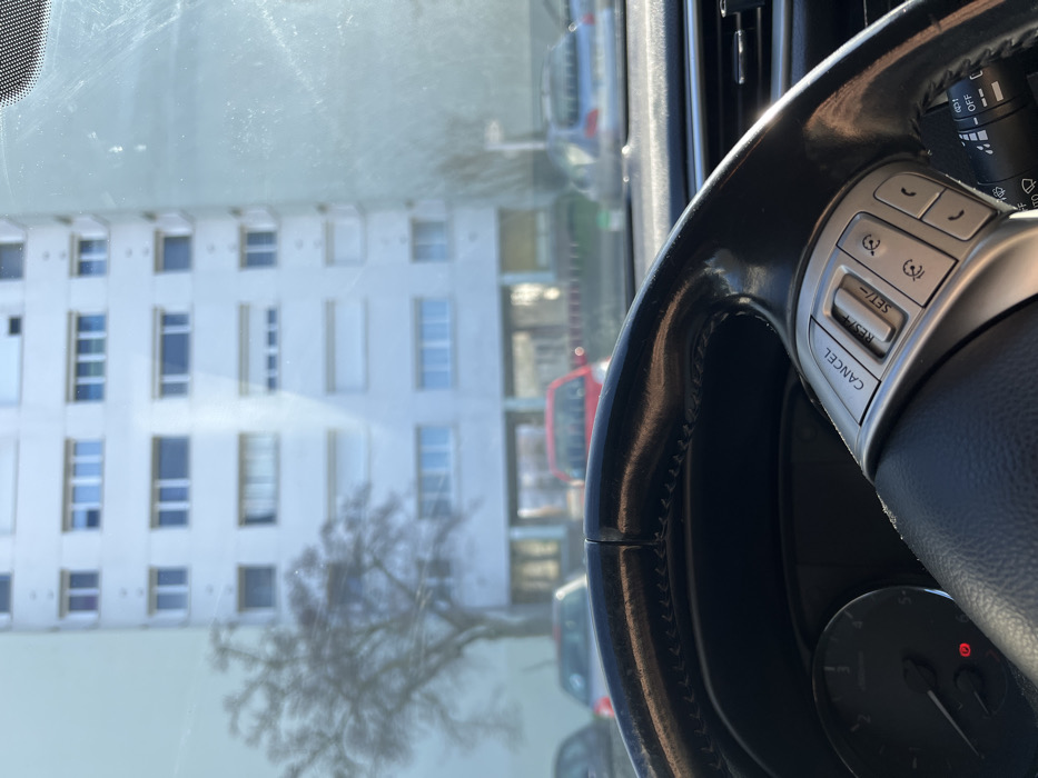 - "The image depicts a view from the interior of a vehicle, looking forward through a smudged windshield" by FM-lbHo52, licensed under CC BY 4.0