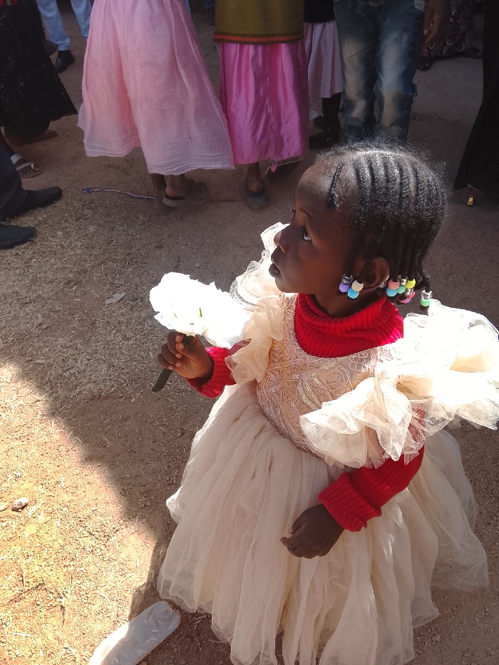- "The image depicts a young Black child in the city of Gwafan, Nigeria, situated outdoors on reddish-brown dirt ground with sparse debris under bright daylight" by FM-m079f2, licensed under CC BY 4.0