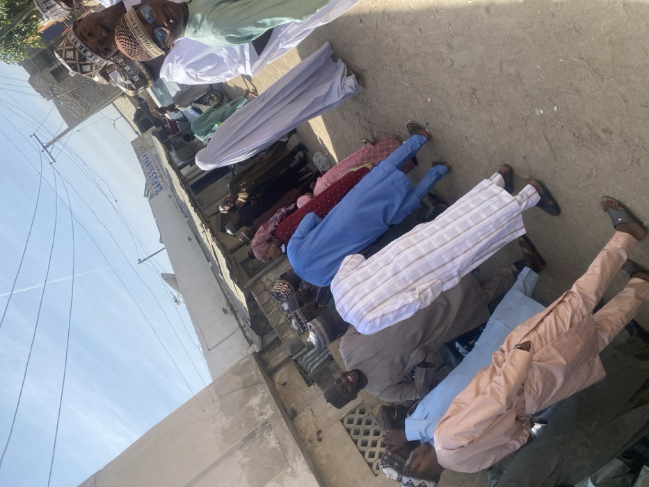 The image captures a crowded outdoor scene on an unpaved dirt street in Chiranchi, Nigeria