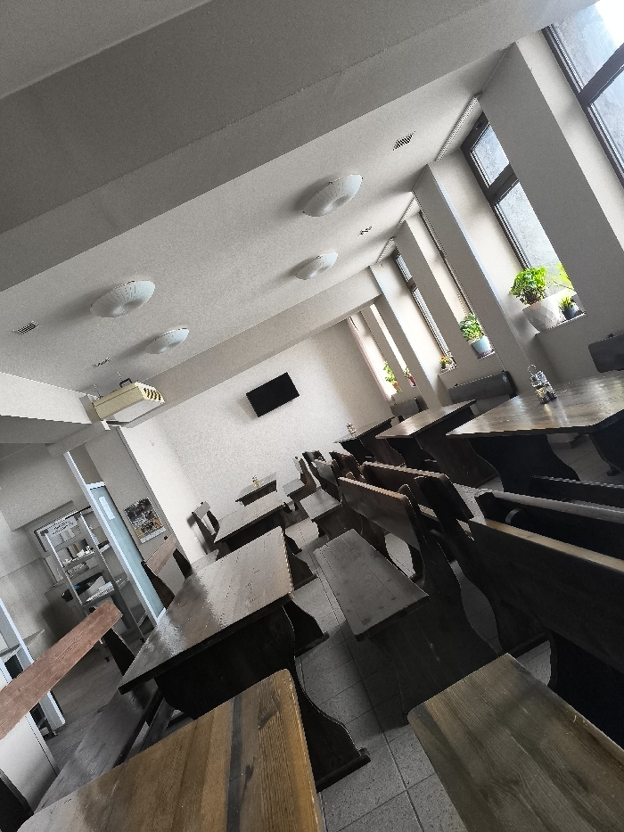 - "The image displays an unoccupied dining hall or communal eating area within a building in Panichishte, Bulgaria" by FM-EkMCu1, licensed under CC BY 4.0