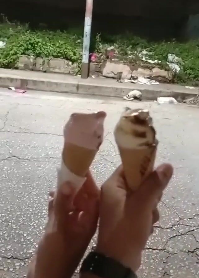 - "A pair of hands hold two ice cream cones in a street scene" by FM-xUvng2, licensed under CC BY 4.0