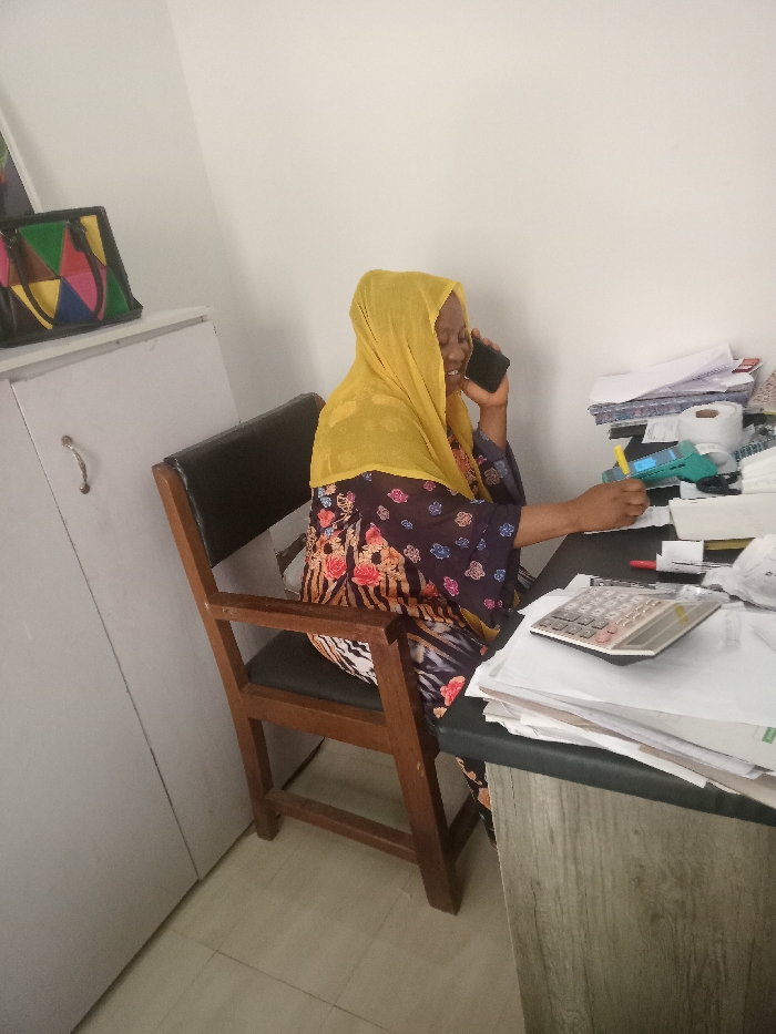 In an office setting within Gwarinpa, Nigeria, a female individual is seated at a desk