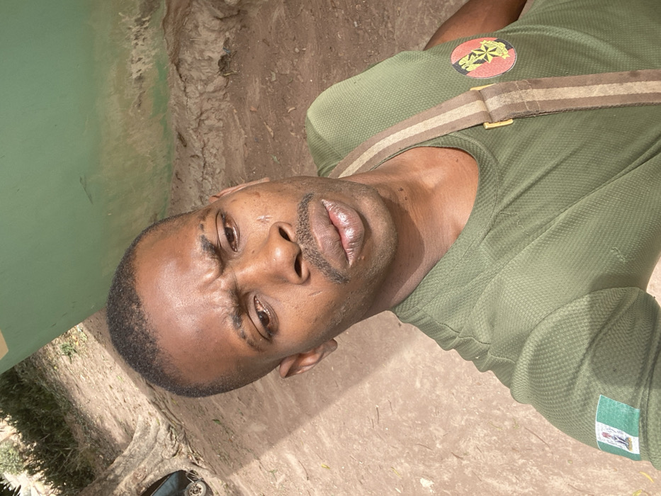 An adult male is featured in a close-up, head-and-torso photograph taken outdoors in what is identified as Zaki Biyem, Nigeria