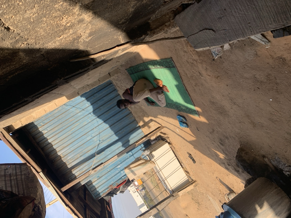 The image depicts an outdoor scene in Sabon Gari East, Nigeria, under direct sunlight, casting distinct shadows