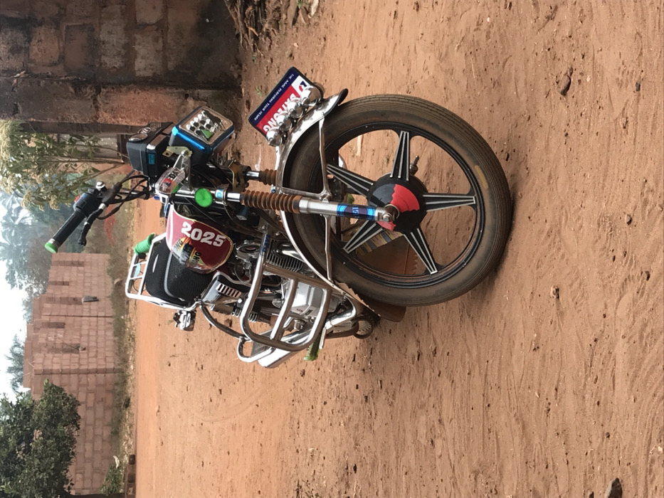 - "A red and chrome motorcycle is parked on reddish-brown dirt ground in Ogodo, Nigeria" by FM-eGIJq1, licensed under CC BY 4.0