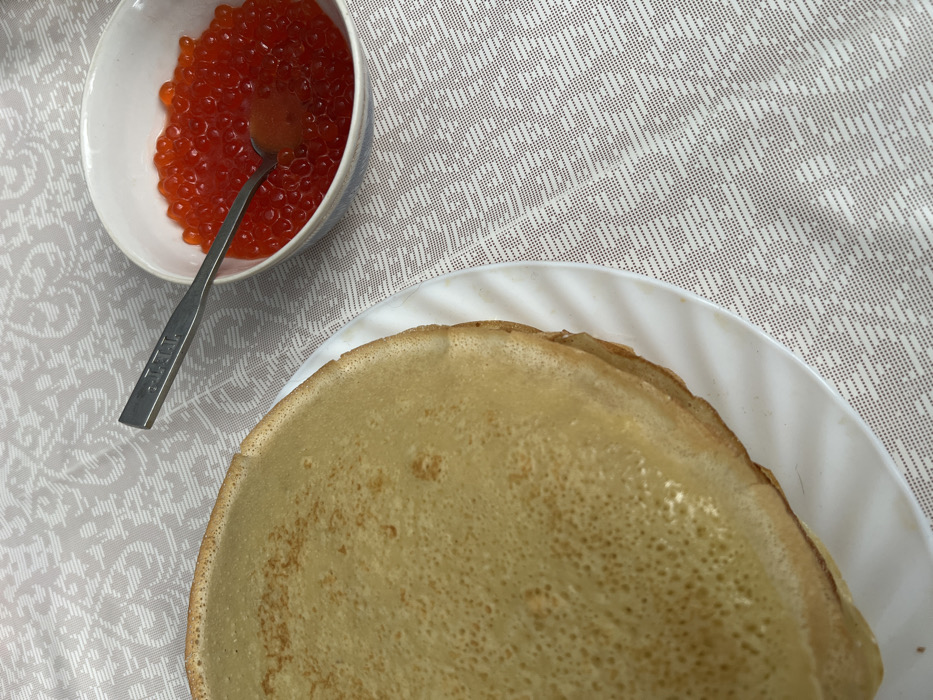 This image depicts a domestic table setting in the city of Пугачёво, Russia