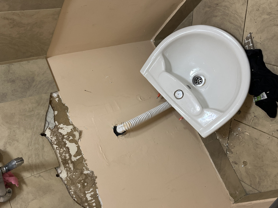 - "The scene depicts an interior corner of a room in Sofia, Bulgaria, exhibiting significant disrepair or ongoing renovation, likely a bathroom or utility area" by FM-DGfKG3, licensed under CC BY 4.0