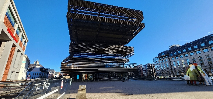 - "This image presents an urban landscape dominated by the Stadshal (City Pavilion) in Ghent, Belgium, viewed under a clear blue sky" by FM-szQ0p1, licensed under CC BY 4.0