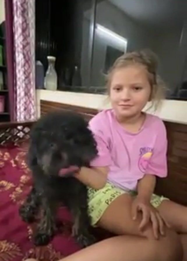 - "A young girl is sitting on a patterned couch or bed with a small black dog" by FM-pp7Zj2, licensed under CC BY 4.0