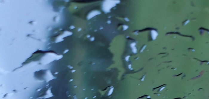 - "The image displays a close-up, vertical view of a transparent surface, likely glass, densely covered with numerous water droplets and rivulets, signifying active rainfall" by FM-iWRRD2, licensed under CC BY 4.0