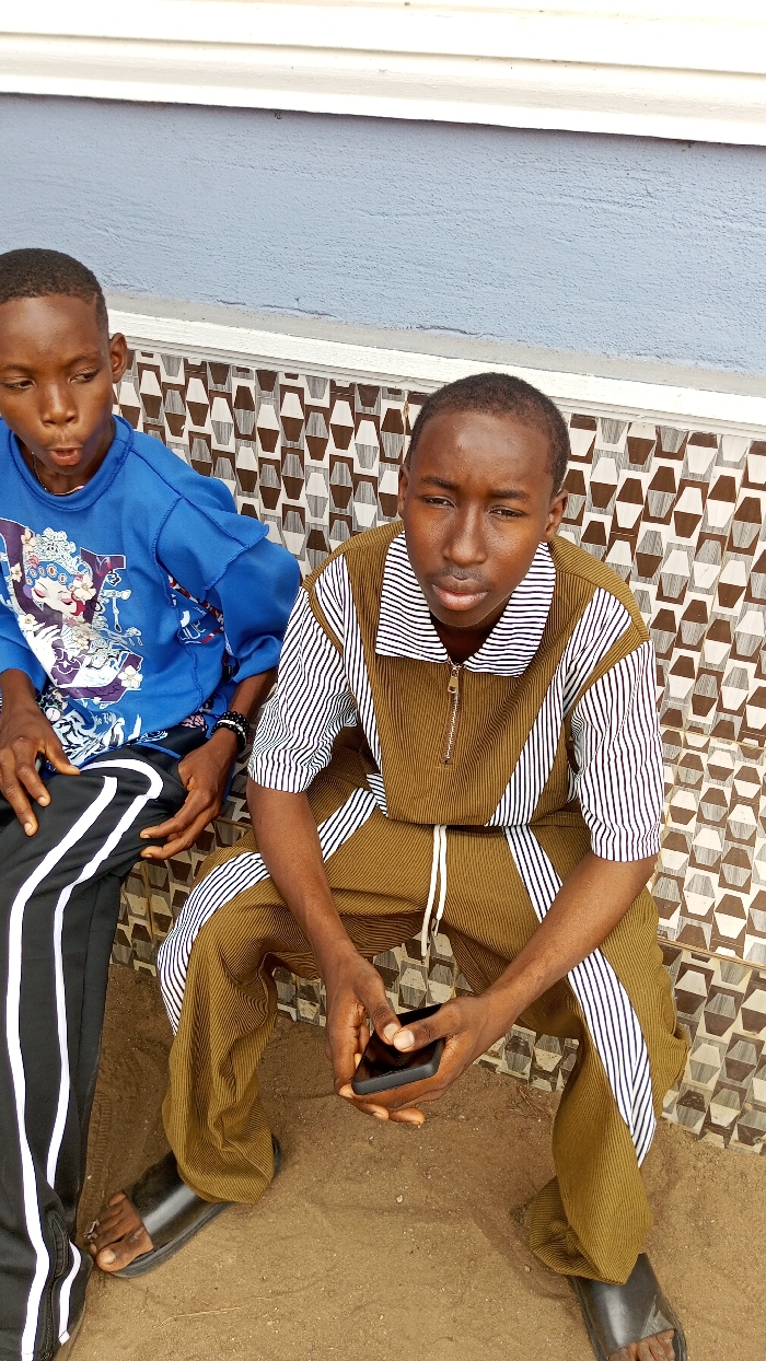 - "Two young males are seated outdoors on light brown earth ground, against a building wall in Agburu Uke, Nigeria" by FM-1O94j1, licensed under CC BY 4.0